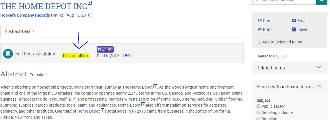 Follows these steps to access a company profile. Home Depot has been used as an example.